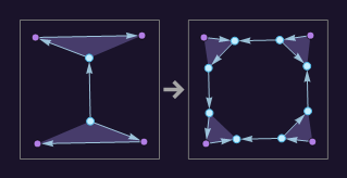 {{{1, 2, 3}, {4, 5, 6}, {1, 4}} -> {{2, 7, 8}, {5, 9, 10}, {6, 11, 12}, {13, 3, 14}, {7, 14}, {8, 12}, {10, 13}, {11, 9}}}