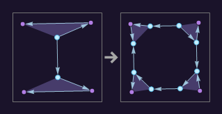 {{{1, 2, 3}, {4, 5, 6}, {1, 4}} -> {{5, 7, 8}, {9, 3, 10}, {11, 12, 2}, {13, 14, 6}, {8, 13}, {11, 9}, {12, 7}, {14, 10}}}
