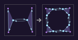 {{{1, 2, 3}, {4, 5, 6}, {1, 4}, {4, 1}} -> {{2, 7, 8}, {3, 9, 10}, {5, 11, 12}, {6, 13, 14}, {7, 11}, {11, 7}, {8, 10}, {10, 8}, {9, 13}, {13, 9}, {12, 14}, {14, 12}}}