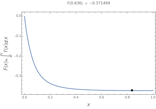 This Demonstration shows a trick for computing the definite integral numerically in a given interval of its upper bound using Mathematica. Instead of using NIntegrate we use the function NDSolve. Five test functions are borrowed from reference[1]. Four of these test functions have a singular point at . You can plot the analytic solutions of the test integrals as well as the difference of the numerical and analytic solutions as a function of the upper bound variable for different working precisions. The black point on the curve gives the function value when the slider position is at . At the right endpoint these values coincide with the values given in the reference in the details.