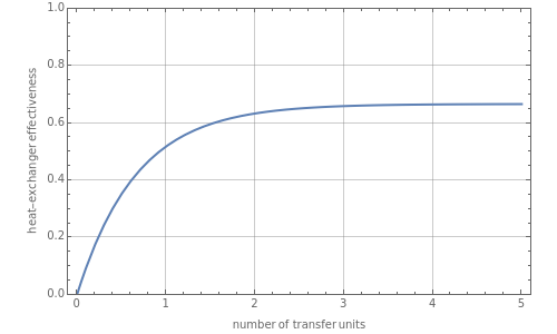 The Demonstration plots the effectiveness of a heat exchanger for both parallel flow and counter-flow configurations versus the number of transfer units for various values of .
