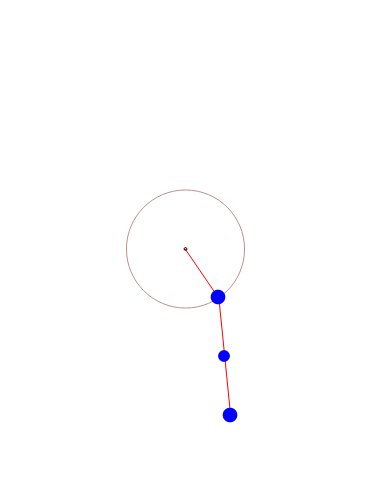 The controls below that are used to set the initial conditions. Units are in radians for the angles and in radians per second for the angular velocities. The initial angle positions can also be set using the mouse as mentioned above; however, using the controls can provide more accurate settings if needed. For convenience, small buttons next to the control variables can be used to quickly set the value to zero.