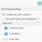 There are different settings available that can affect the output of the Chat Notebook. The most important one is obviously the model, which we already discussed. Another setting that you can change is the persona. If we go to the menu, you will see that the above example was generated with the “Plain chat” persona. You can change that easily—select a different persona from the ones that are already available in Mathematica, install external ones or even make your own. Before going into the details of how to create your own persona, it’s worth just briefly covering what personas are and how they work in Wolfram Mathematica.