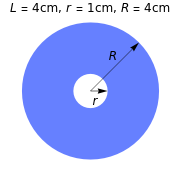 Consider the hollow cylindrical magnet as two cylindrical magnets with radii and , of equal length and magnetization. The magnetization directions of the cylinders are opposite. Therefore the magnetic field induction is calculated as the total of two cylindrical magnetic inductions .