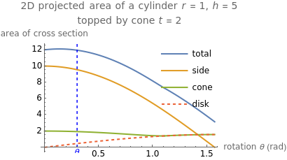 This Demonstration calculates the projected area of a cylinder topped by a cone. This represents the frontal area for fluid flow incident on the cylinder.