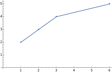 data={{1,2},{2,3},{3,4},{6,5}};exp=FindFormula[data,x]Show[ListPlot[data],Plot[exp,{x,1,6}]]