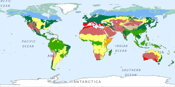 Terrestrial biomes of the world according to Olson & Dinerstein (also used in the WWF Global 200 classification) already have computational representations in Wolfram Language here’s how one might represent them on a map: