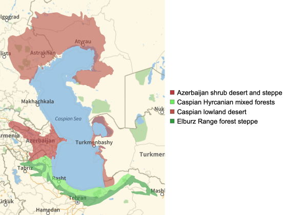 Finally, here’s an example showing one way you might use the ecoregions data explored in this text in combination with other Wolfram Language ecology functionality.