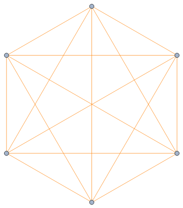 Check or uncheck the boxes to color edges blue or orange. (The boxes on the main diagonal are for counting, but don't do anything.) You can think of the blue edges as the edges of a graph and the orange edges as the edges of the graph complement of .