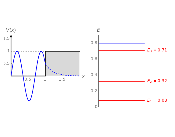 This Demonstration shows the solutions to the time-independent Schrödinger equation, treating energy as a continuous parameter. Once appropriate boundary conditions are applied, the energy levels become quantized and the corresponding eigenfunction and its first derivative are continuous across the boundary. The left and right panels show the wavefunction and corresponding energy, respectively. If the energy is equal to one of its eigenvalues, the wavefunction is smooth across the boundary; otherwise it develops a kink.