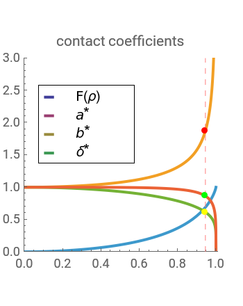 The top-right plot shows the contact coefficient data based on numerical methods to solve elliptic integrals equations.