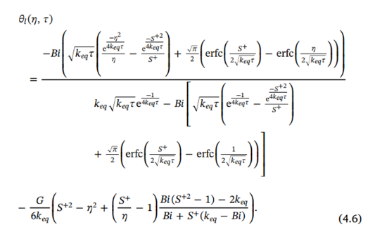 In the paper, the dimensionless temperature in the liquid region is given by the following expression: