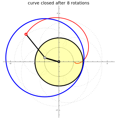 The peritrochoid becomes a closed curve after rotations of the rolling circle, where is the denominator of a rational close to .