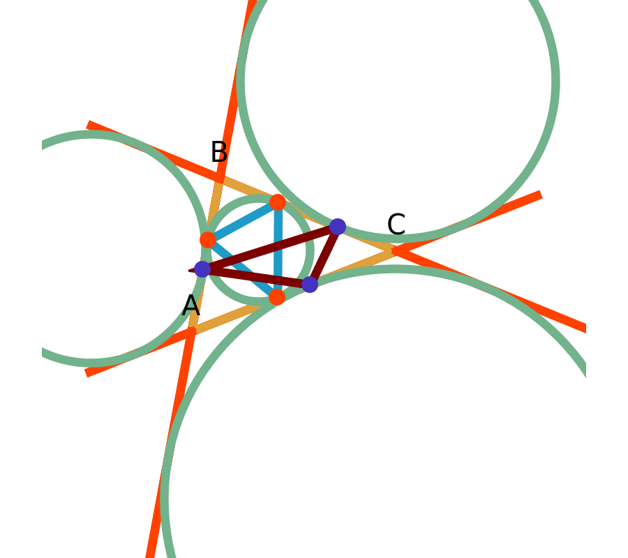 http://demonstrations.wolfram.com/TheExtouchAndIntouchTrianglesOfATriangle/