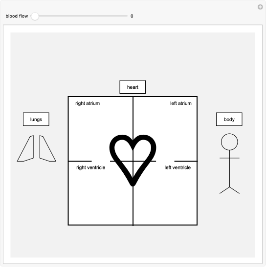 This Demonstration shows the steps in the pathway that blood takes while circulating through the heart, lungs and body. Adjust the slider to see the path depicted by arrows.