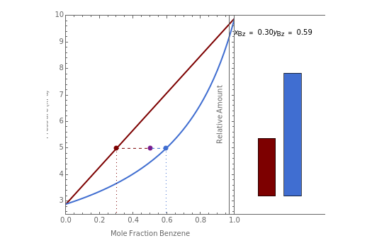 http://demonstrations.wolfram.com/LeverRuleAppliedToTheBenzeneTolueneVaporPressureDiagram/