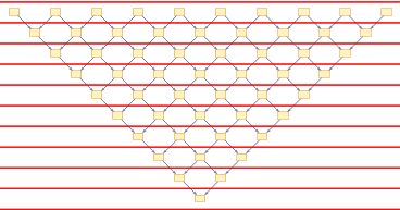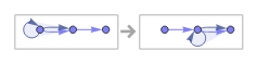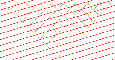Whether you’re sitting down or walking while reading this post, it should be the same post. The substance of what happens in the Universe should not depend on the reference frame. The same should hold true for Wolfram Models. You should not have a “privileged” reference frame, a particle that is standing in one should be moving in the other.Let us recall what the reference frame corresponds to all the way from the Technical Introduction:On the causal graph, we can introduce a foliation to turn the graph of update events into a sequence of states. A standing observer’s foliation is horizontal, like this:If we have a moving observer, that just corresponds to a tilted foliation:But, if we want our initial system not to be the special reference frame, we need to be able to produce a system with the evolution from the new reference frame directly:It is not at all a given that a Wolfram model will obey this property. It is especially non-obvious how to have subluminal particles in this formalism.Here is an example of a system that is not relativistically coherent - see how the value of the clock at the time of the collision changes when we pass to another reference frame, since we skip some clock ticks when taking the slice: