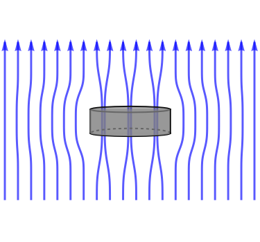When you drag the locator to a position on the phase diagram, the graphic shows an idealized representation of the corresponding state of the conductor and the magnetic field lines, shown in blue. Stronger magnetic field intensity is indicated by darker field lines.