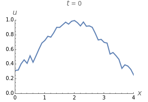 Since Burgers's equation is a flux-conservative hyperbolic partial differential equation, it is amenable to finite-volume methods. In this Demonstration, Burgers's equation is solved with the Harten–Lax–van Leer (HLL) method with periodic boundary conditions.