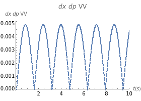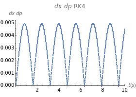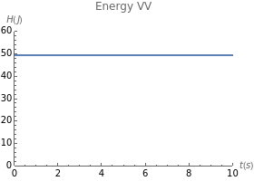 The Demonstration aims to simulate a classical molecular model for bond vibrations[1] in which the force fields[2] are approximated as harmonic oscillators[3]. Usually simulations are carried out in isolated conservative systems so it is important to have both energy and the total number of particles[4] conserved by the approximate solution. This is achieved by conservtion of the product . In the above example you can see the best that can be achieved for the former product is a strongly oscillating value with a constant mean and not a single point constant value. This result is reached by the VV algorithm but not by the RK algorithm. Algorithms able to conserve are referred to as symplectic integrators[5]. Typical molecular calculations are carried out with .