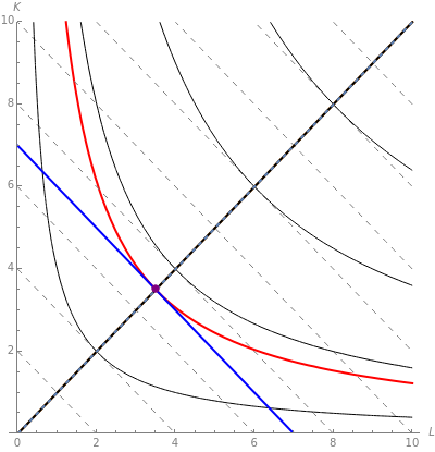 The Demonstration lets you study the behavior of different lines by switching them on/off in the graph. The basic isoquant comes from solving an optimization problem for a given isocost that serves as a constraint.