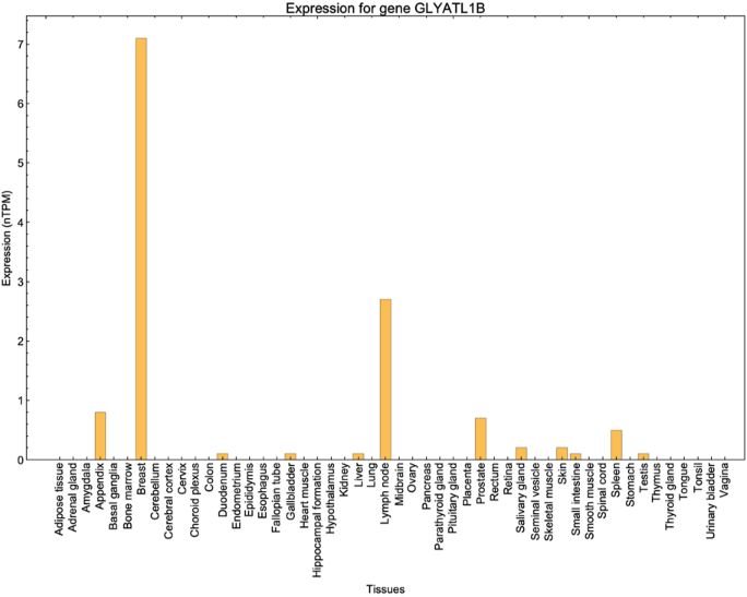 {Adipose tissue,Adrenal gland,Amygdala,Appendix,Basal ganglia,Bone marrow,Breast,Cerebellum,Cerebral cortex,Cervix,Choroid plexus,Colon,Duodenum,Endometrium,Epididymis,Esophagus,Fallopian tube,Gallbladder,Heart muscle,Hippocampal formation,Hypothalamus,Kidney,Liver,Lung,Lymph node,Midbrain,Ovary,Pancreas,Parathyroid gland,Pituitary gland,Placenta,Prostate,Rectum,Retina,Salivary gland,Seminal vesicle,Skeletal muscle,Skin,Small intestine,Smooth muscle,Spinal cord,Spleen,Stomach,Testis,Thymus,Thyroid gland,Tongue,Tonsil,Urinary bladder,Vagina}
