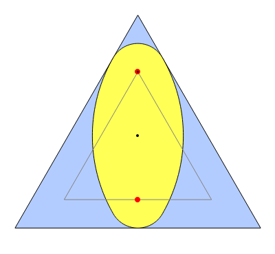 The construction shown allows you to turn circular motion into triangular motion and so construct a drill for triangular holes. The roller—the yellow shape that rotates inside the large triangle—consists of four circular arcs. As it rotates, the centers of the smaller circles trace out an exact equilateral triangle. You can vary the size of the roller so as to get triangular holes of different sizes without changing the ambient triangle.