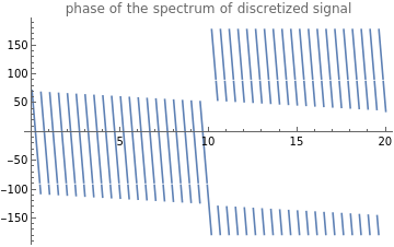 Plot[Arg[X_d[f]]*180/Pi,{f,0,2g_f0},PlotRangeFull,PlotLabel"phase of the spectrum of discretized signal"]