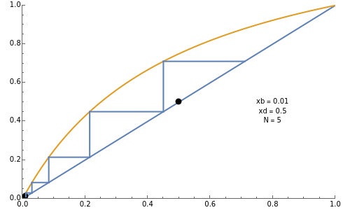 En este cuaderno mostramos en forma gráfica los resultados del método McCabe-Thiele para calcular el número mínimo de etapas requeridas (operación a reflujo total) para separar mezclas ideales binarias mediante destilación, p.ej, benceno-tolueno, n-hexano- n-heptano etc. La volatilidad relativa es un indicador de la dificultad con la que se lleva a cabo la separación y también de la cercanía de los puntos de ebullición de los componentes de la mezcla, cuando la volatilidad relativa tiende a la unidad el número mínimo de etapas tiende a infinito, por supuesto para todos fines prácticos cuando los puntos de ebullición son muy cercanos es preferible otra opción para separar la mezcla p ej extracción líquido-líquido o destilación reactiva.
