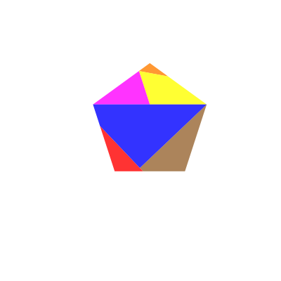 A regular pentagon is cut into three pieces that can be reassembled into a parallelogram. Next, the parallelogram is dissected into a square.