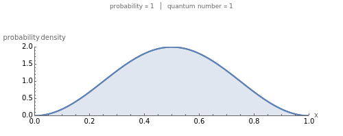 The one-dimensional solution to Schrödinger's equation for an electron in an infinite square potential well (normalized to be of width 1) is , where is the quantum number. The square of this wave function is the probability density function for the electron.