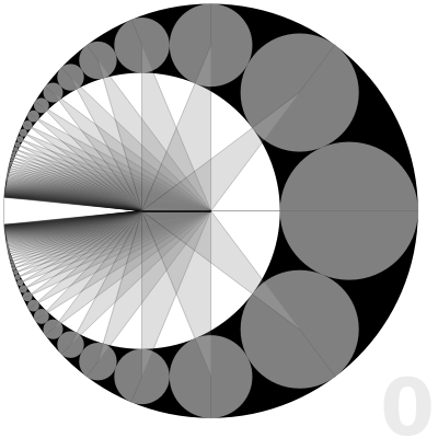 The Pappus chain extends across at least two millennia of mathematics. Its origins trace back to the ancient Greek mathematician Archimedes and his studies of circles inscribed within the figure of an arbelos (or shoemaker's knife). The inversive geometry trick for efficiently computing the positions of pairwise tangent inscribed circles, or a Pappus chain, is apparently a modern invention. The Apollonian gasket or curvilinear Sierpinski sieve is constructed by the same iterative process of inscribing a circle in triplets of tangent circles. Thus the Pappus chain construction anticipates the class-2 nested behavior of many elementary cellular automata.