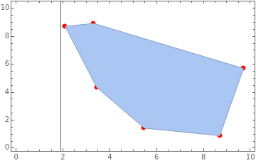The convex hull of a set of points in a Euclidean space is the smallest convex set that contains all the points. Formally, if S is a set of points {, , ..., }, the convex hull of S, denoted as Conv(S), is defined as: