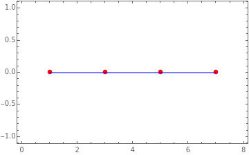 In 1D, the convex hull of a set of points is simply the interval (line segment) between the smallest and largest points. For example, if you have points on a number line, the convex hull is the segment that starts at the smallest point and ends at the largest point.
