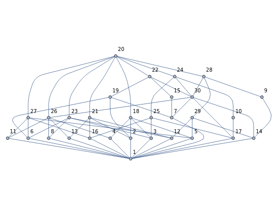 For example, snapshot 1 shows the lattice of subgroups of , with itself at the top and the identity at the bottom (this last position is common to all lattices). Vertex 6 shows the list , which means that is generated by the two permutations and in cycle notation, or, in Mathematica notation, {Cycle[{{1,2}}], Cycle[{{2,3}}]}. In snapshot 2, we have the lattice of , of order 16 (note that you cannot deduce the order of a group from its lattice of subgroups) formed by its 19 subgroups (including itself and the identity). The subgroup labeled 6 is generated by the permutation Cycle[{{1,3,5,7},{2,4,6,8}}]. In the same lattice, the subgroup labeled 19 is generated by two permutations.