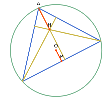 In a triangle, twice the distance from the circumcenter O to a side equals the distance from the orthocenter H to the vertex opposite that side.