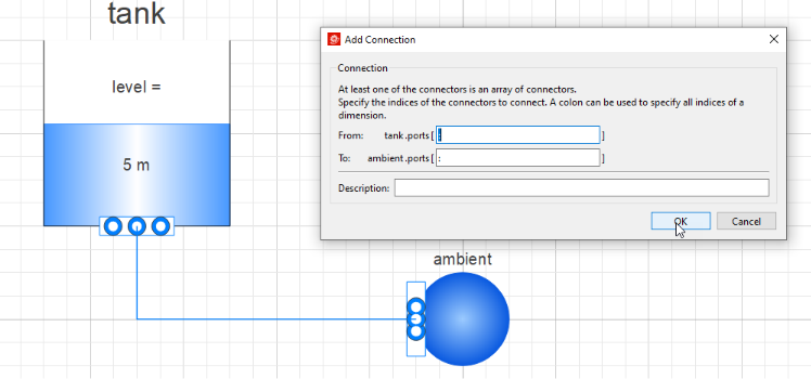 In this example as we want to connect only to the ambient we will set the nPorts to 1