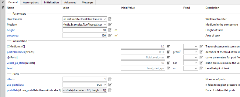By default, the initial level of fluid in the tank is set at 0.5 * height of the tank. You can keep the default or change it by going to the Initialization tab changing the level_start parameter