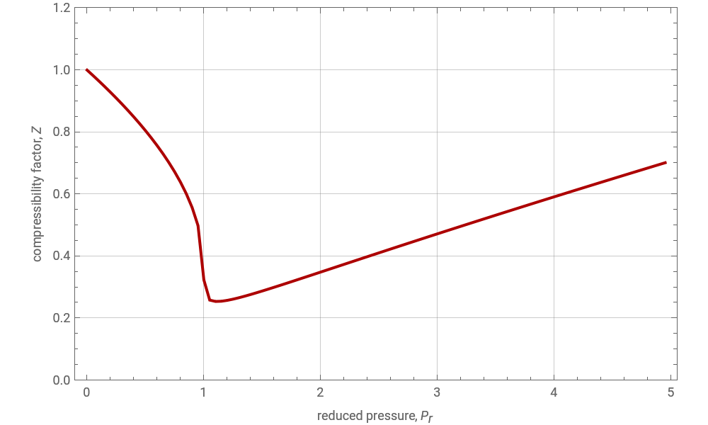 The Soave–Redlich–Kwong equation of state can accurately describe a compound in both liquid and vapor phases. This Demonstration applies this equation of state to estimate and plot the compressibility factor, , versus reduced pressure, =, for ethane at various values of the reduced temperature, =.