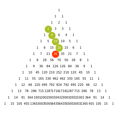 The sum of the numbers on the green leg is the number in the red foot. The colored dots look like a Christmas stocking, which is where this identity gets its name.