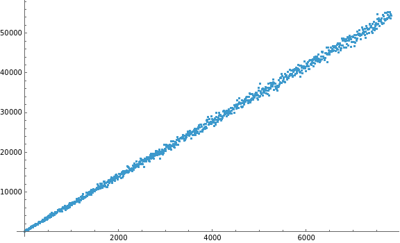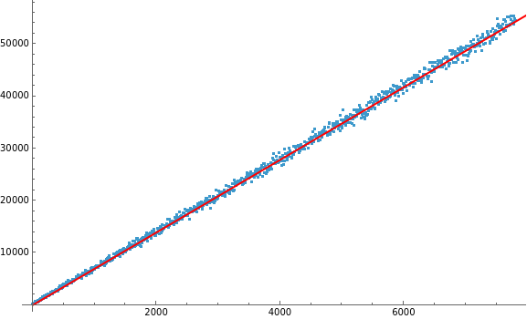 data=(n{Log[♯[n]],Length@Collatz[♯[n]]})/@Range[1000];