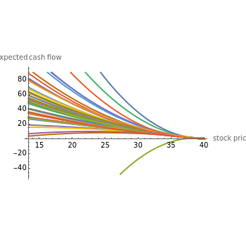 This Demonstration shows the Longstaff–Schwartz least squares Monte Carlo method of computing the value of an American put option. We approximate the American option by a Bermudan option with 50 exercise times. The key point of the method is the estimation of conditional expectations by least squares regression on data obtained from Monte Carlo simulation using a basis for the space of -functions. In this Demonstration we use three different kinds of bases. We show the graphs of the functions that estimate conditional expectations at the exercise points on a graph, below the value of the option computed by means of the Longstaff–Schwartz method, and the value computed by means of the binomial tree method with 1000 time steps.