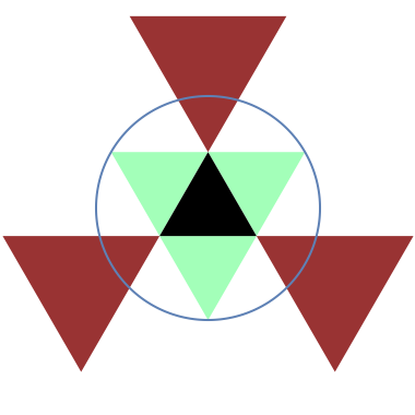 This Demonstrations has to do with Odom's recognition of the relationship between the golden ratio and the equilateral triangle. Construct three triangles by extending the edges of an equilateral triangle.