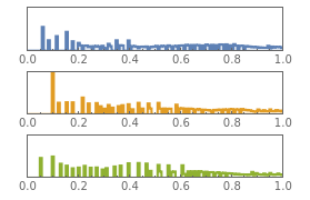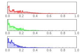 The histogram of an image shows how many pixels have each of the possible intensity values. Histogram equalization is a kind of contrast enhancement that stretches the histogram so that all values occur (more or less) an equal number of times. The resulting image uses the full range of possible values. This often works well, especially for bringing out details in overly light or overly dark sections of a grayscale image. When operating on color images, straightforward application of the histogram equalization to the red, green, and blue channels increases the contrast, but may also change the color balance. A common trick (selected here using the mode chooser box) is to operate in the HSB colorspace, applying the histogram equalization to the brightness channel, while leaving the hue and saturation channels unchanged. The display shows the original image on the left and the equalized image on the right. The histograms of the two images are shown immediately below. Observe how the RGB mode stretches all three channels while the HSB mode only stretches the brightness channel.