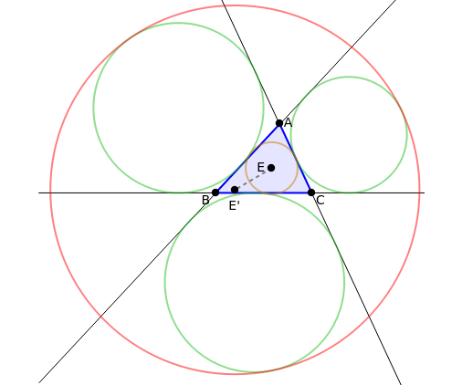 For a triangle , let and be the circumradius and inradius, be the semiperimeter, be the nine-point circle and be the Apollonius circle.