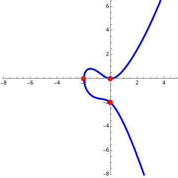 In this Demonstration, you can pick from a torsion subgroup of order and select integer values for the parameter to vary the curve . Vary and to see changes in the plot of the curve, the points in the torsion subgroup that are not the point at infinity, and a geometric illustration of the sum for all .