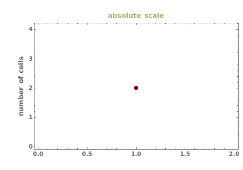 Snapshot 1: an absolute scale plot of bacterial cell numbers resulting from an initial starting population of 35 cells, proceeding through 17 rounds of binary fission