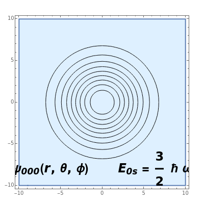 This Demonstration shows contour plots in the plane for the lower-energy eigenfunctions with to . For , the eigenfunctions are complex. In all cases, the real parts of (r,θ,ϕ) are drawn. The wavefunctions are positive in the blue regions and negative in the white regions. The radial functions are also plotted, as well as an energy-level diagram, with each dash representing the degenerate set of eigenstates for a given .