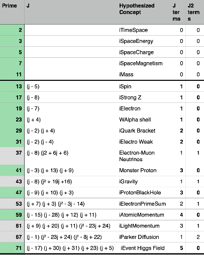 The modular forms of one variable give a unique insight into the internal structure of primes. The 15 SuperSingular Primes, which are the prime factors of the Monster Group can be seen clearly in the following table with a J2 term of 0. In particular, the singular values of the first 20 primes, corresponds with the Sporadic Group Framework, giving insights to physical and information properties of the particle zoo and the cosmic menagerie.
