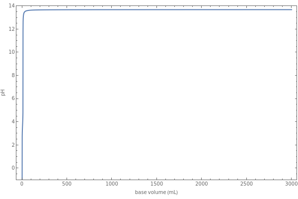 Weak monoprotic acids can be neutralized in the presence of a strong base (such as sodium hydroxide) to form a buffered solution between the excess acid and the newly formed sodium salt of the conjugate base. As base is added, but before the acid is completely neutralized, the of the solution can be calculated using the Henderson–Hasselbalch equation:, where is the negative log of the acid dissociation constant and and are concentrations in moles per liter. After the neutralization, the is determined by the amount of excess base present. The volume of base required to reach the equivalence point (point of inflection) is determined by three variables: the concentration and volume of acid present and the concentration of base being added.